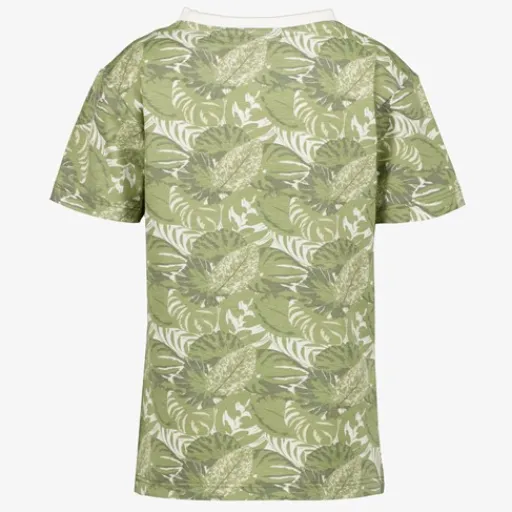 Groen T-shirt voor jongens van Unsigned. Voorzien van korte mouwen, een ronde hals en botanische print. Gemaat van 95% katoen en 5% elastaan.