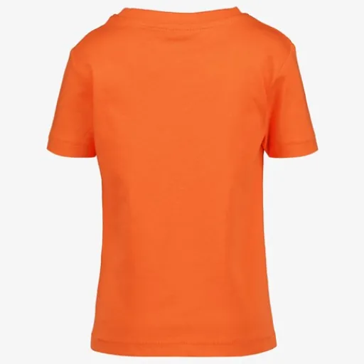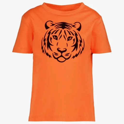 Oranje T-shirt voor jongens. Voorzien van korte mouwen en een ronde hals. Het T-shirt heeft een tijgerkop aan de voorzijde en is gemaakt van 100% katoen.