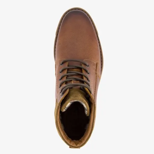 Bruine, leren veterbots van Van Beers. Deze comfortabele en stijlvolle boots zijn gemaakt van leer, hebben een binnenwerk van leer en een stevige buitenzool met profiel. De boots zijn voorzien van veters en hebben een aantreklusje op de hak. De binnenzool van leer is niet uitneembaar. Combineer de boots met bijvoorbeeld een jeans of cargobroek uit de collectie!