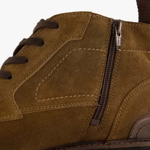Cognackleurige veterboots voor heren uit de Van Beers collectie. Het buitenwerk is gemaakt van leer, het binnenwerk van textiel en de stevige buitenzool is van rubber. Voorzien van een veter- en ritssluiting en hiellusjes. Deze nette schoenen zijn helemaal gevoerd en hebben een vast voetbed van leer.