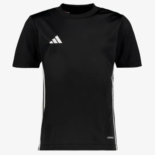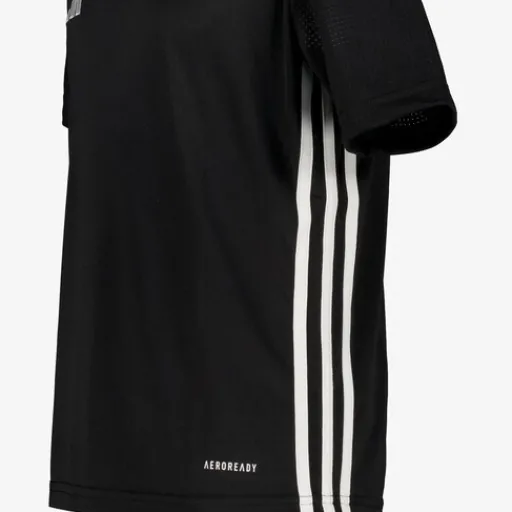 Zwart Adidas 23 Jersey sport T-shirt voor kinderen. Voorzien van een hoge, ronde hals en korte mouwen. Het shirt is vervaardigd van AEROREADY materiaal wat je droog en comfortabel houdt. Daarnaast hebben de mouwen ventilerende mesh inzetten. Gemaakt van 100% polyester.