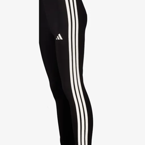 Zwarte Adidas 3-Stripes sportlegging voor dames. Voorzien van een elastische tailleband en witte strepen langs de zijkanten. De legging heeft een nauwsluitende pasvorm en is gemaakt van 90% katoen en 10% elastaan.