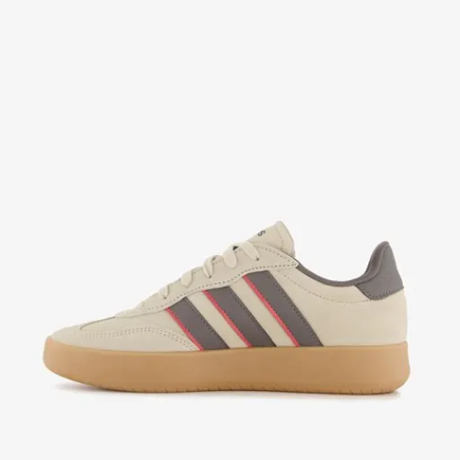 Beige Adidas Barreda sneakers voor heren. Het buitenwerk is gemaakt van imitatieleer, het binnenwerk van textiel en de profielzool is van rubber. Voorzien van een vetersluiting en een comfortabele binnenzool van textiel. Deze is niet uitneembaar. De sneakers hebben een bruine buitenzool en de iconische 3-Stripes op de zijpanden.