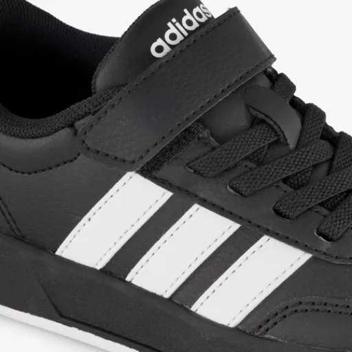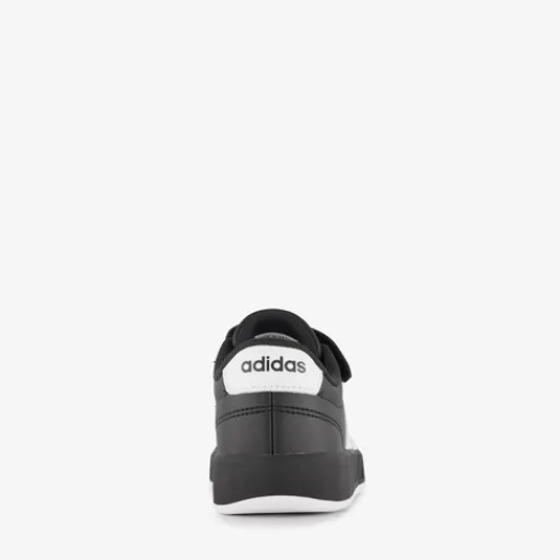 Zwarte Adidas Breaknet 3.0 sneakers voor kinderen. Het buitenwerk is gemaakt van imitatieleer, het binnenwerk van textiel en de stevige zool met profiel is van rubber. Voorzien van elastische veters en een klittenbandsluiting voor een optimale pasvorm en uitneembare binnenzool van textiel. De sneakers hebben witte details en witte Adidas 3-Stripes op de zijpanden.