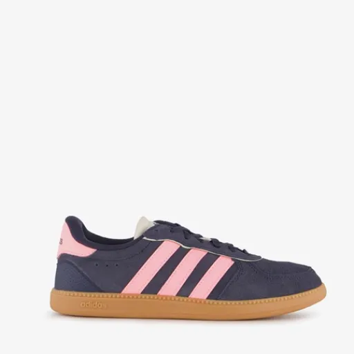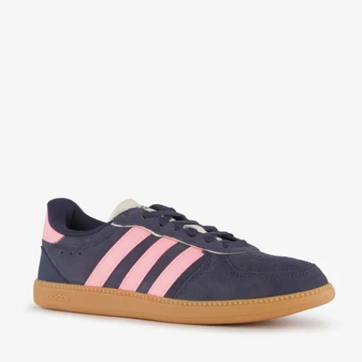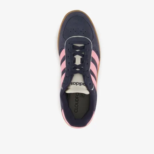 Paarse Adidas Breaknet sneakers voor dames. Het buitenwerk is gemaakt van suède en imitatieleer, het binnenwerk van textiel en de profielzool van rubber. De schoenen hebben roze accenten en de iconische 3-Stripes aan de zijkanten. Het vaste voetbed bevat Memory Foam wat demping en comfort biedt bij elke stap die je neemt..