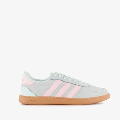 Mingroene Adidas Breaknet Sleek sneakers voor dames. Het bovenwerk is gemaakt van suède en imitatieleer, het binnenwerk van textiel, en de stevige buitenzool van rubber. De sneakers hebben een vetersluiting en een comfortabel voetbed van textiel met Luxe Foam. Ze zijn voorzien van een geperforeerde voorvoet en de iconische 3-Stripes aan de zijkanten in pastelroze. De binnenzool is niet uitneembaar.