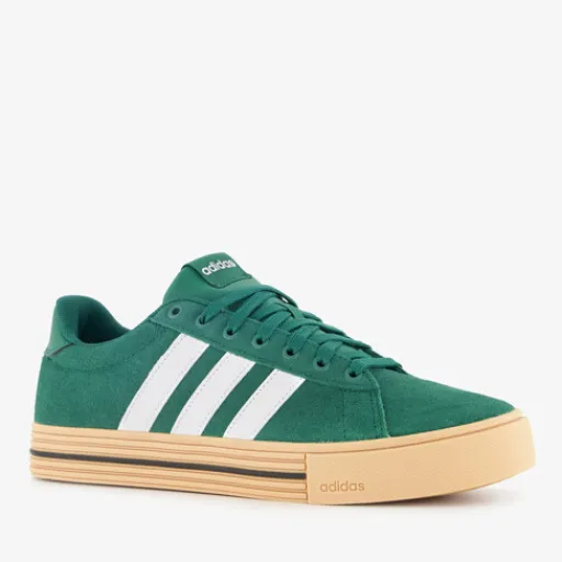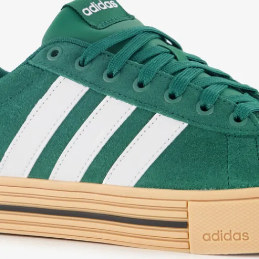 Groene Adidas Daily 4.0 sneakers voor heren. Het buitenwerk is gemaakt van imitatieleer, het binnenwerk van textiel en de stevige profielzool is van rubber. De sneakers hebben een beige buitenzool, witte merkopdrukken op het bovenwerk en op de zijpanden zijn de iconische Adidas 3-Stripes aangebracht. Binnenzool is niet uitneembaar.