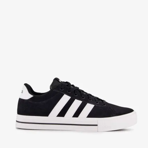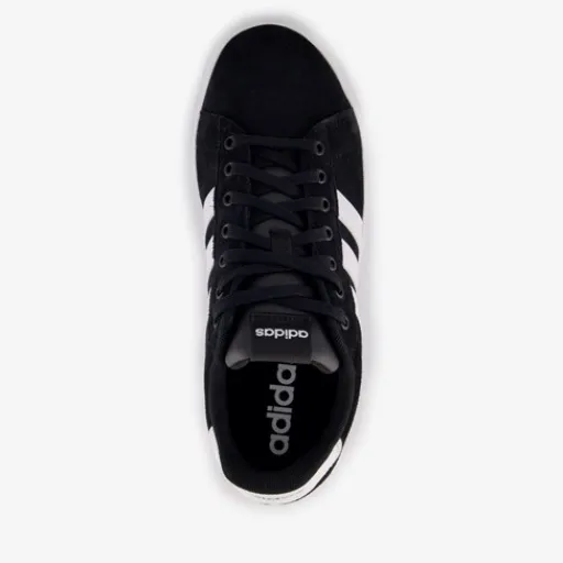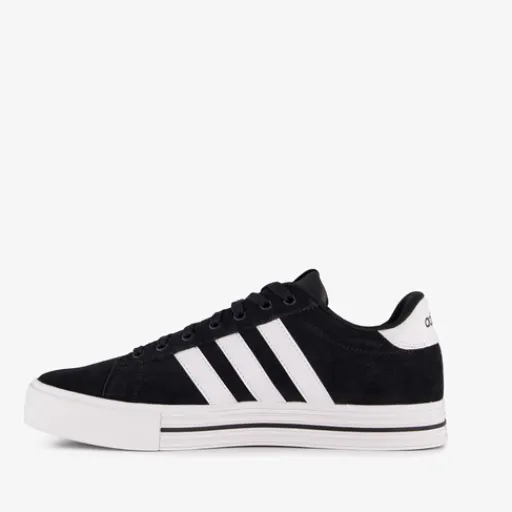 Zwarte Adidas Daily 4 sneakers voor heren. Het buitenwerk is gemaakt van imitatieleer, het binnenwerk van textiel en de profielzool van rubber. Voorzien van voorvoetversteviging en een comfortabele binnenzool van textiel. Deze zijn niet uitneembaar. De schoenen hebben witte accenten en witte 3-Stripes aan de zijkanten.