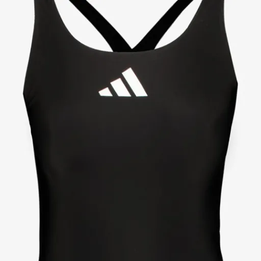 Zwarte Adidas badpak voor dames. Voorzien van een witte merkopdruk aan de voorzijde, een open rug en racerback bandjes. Gemaakt van 78% nylon en 22% elastaan.