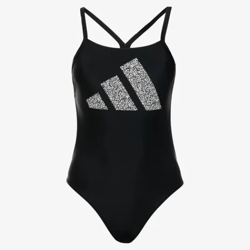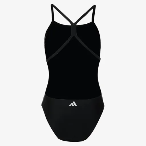 Zwarte badpak van Adidas voor dames. De badpak is voorzien van een merkopdruk aan de voorzijde, een open rug en racerback bandjes. Gemaakt 78% nylon en 22% elastaan.