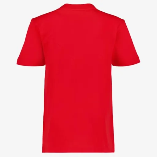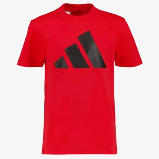 Rood Adidas Essentials sport T-shirt voor kinderen. Voorzien van een hoge, ronde hals en korte mouwen. Het shirt heeft de iconische Adidas 3-Stripes in het zwart op de borst en is gemaakt van 100% katoen.