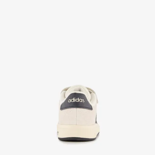 Witte Adidas Grand Court 00s sneakers voor kinderen. Het bovenwerk is gemaakt van suède, het binnenwerk van textiel en de stevige profielzool is van rubber. Voorzien van elastische veters en een klittenbandsluiting voor een optimale pasvorm en een comfortabele binnenzool van textiel. Deze is uitneembaar. De sneakers hebben zwarte details en zwarte Adidas 3-Stripes aan de zijkanten.