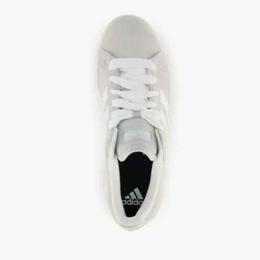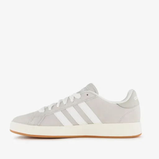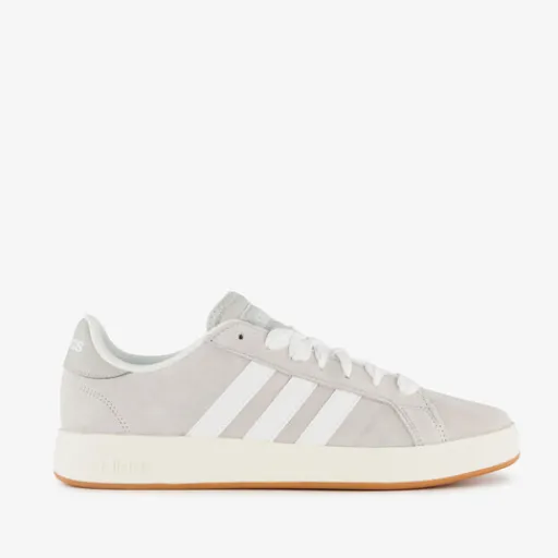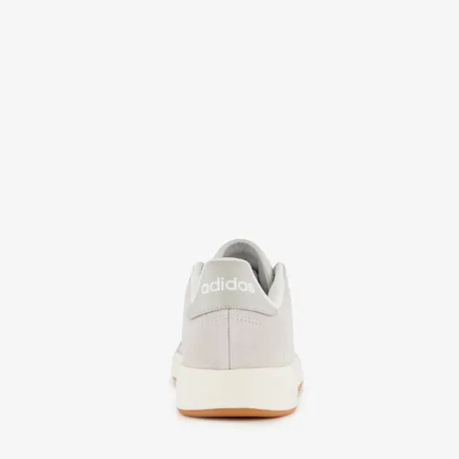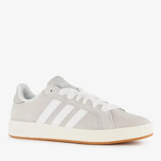 Grijze Adidas Grand Court Base 00s heren sneakers. Het bovenwerk is gemaakt van suède, het binnenwerk van textiel en de stevige zool met profiel is van rubber. Voorzien van een vetersluiting en een uitneembare binnenzool van synthetisch materiaal. De sneakers hebben de iconische Adidas 3-Stripes op de zijpanden en een merkopdruk op de hiel en tong.