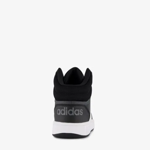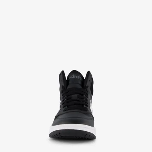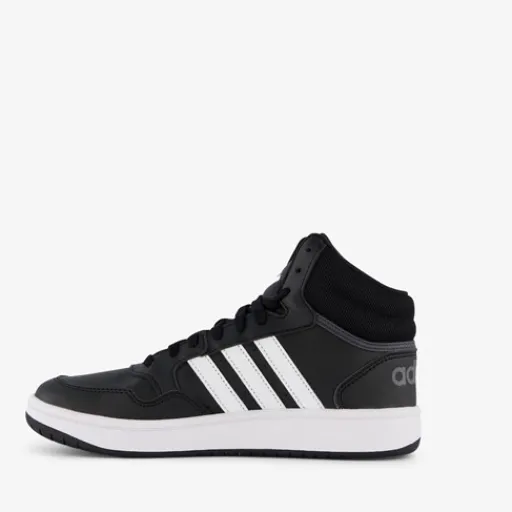 Hoge, zwarte Adidas Hoops Mid 3.0 sneakers voor kids. Gemaakt van imitatieleer met een binnenwerk van textiel en een stevige profielzool. De sneakers hebben een vetersluiting en comfortabel, uitneembaar voetbed van textiel. Deze mooie sneakers hebben de iconische witte Adidas 3-Stripes op de zijpanden. De rubberen buitenzool biedt grip en demping.