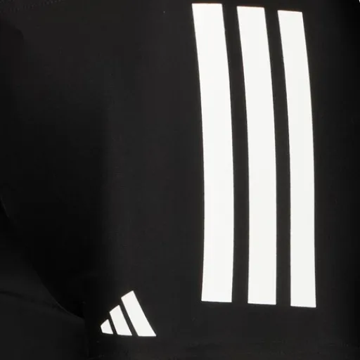 Zwarte zwembroek voor jongens van Adidas. Voorzien van een elastische tailleband en aansluitende pasvorm. De zwembroek heeft een witte merkopdruk op de bovenbeen en witte Adidas 3-Stripes aan de zijkanten. Gemaakt van 80% gerecycled nylon en 20% elastaan.