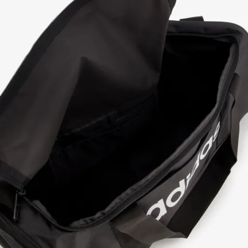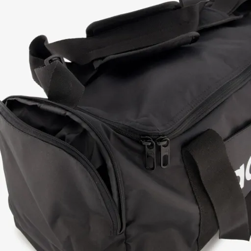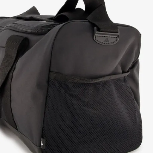 Zwarte Adidas Linear Duffel Small sporttas. Voorzien van twee handvaten aan de bovenzijde die je met een klittenband aan elkaar vast kan maken en een verstelbare schouderriem met een verplaatsbaar kussentje. De tas heeft een ruime hoofdvak met ritssluiting. Hierin bevinden zich meerdere vakjes en een aparte schoenenvak. De sporttas heeft een vak met ritssluiting aan de ene zijkant en een mesh vakje aan de andere kant. Gemaakt van polyester. Afmetingen: 20 x 45 x 23 cm. Inhoud is 24 liter.