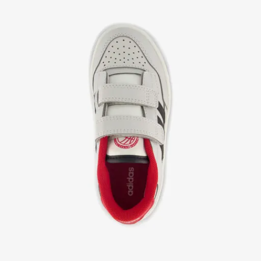 Lichtgrijze Adidas Rapid Court EL CF C sneakers voor kids. Gemaakt van imitatieleer, een binnenwerk van textiel en een rubberen zool. De sneakers hebben twee klittenbandsluitingen voor een makkelijke instap en aansluitende pasvorm. Het vaste voetbed is gemaakt van textiel. De sneakers hebben zwarte merkopdrukken en rode accenten bij de voering.