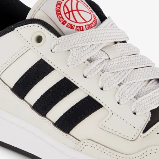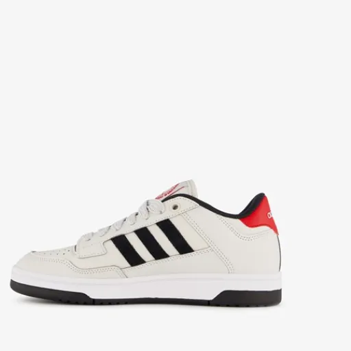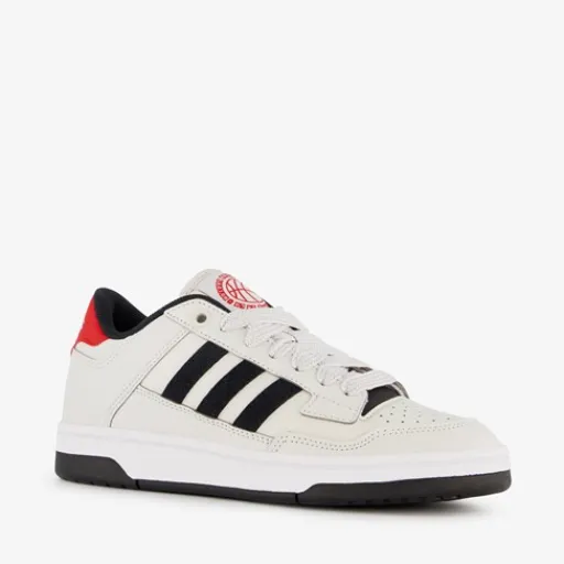 Grijze Adidas Rapid Court Low sneakers voor kinderen. Het buitenwerk is gemaakt van imitatieleer, het binnenwerk van textiel en de stevige profielzool is van rubber. Voorzien van een vetersluiting en een comfortabele binnenzool van textiel. De sneakers hebben rode en zwarte details en de iconische Adidas 3-Stripes op de zijpanden.