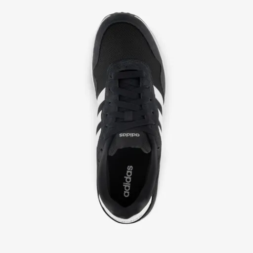 Zwart-witte Adidas Run 60s 4.0 sneakers voor heren. Het bovenwerk is gemaakt van textiel en leer, het binnenwerk van textiel en de profielzool is van rubber. Voorzien van een vetersluiting en een comfortabele binnenzool van textiel. Deze is niet uitneembaar. de sneakers hebben een wit-zwarte buitenzool en aan de zijkanten zijn witte Adidas 3-Stripes aangebracht.