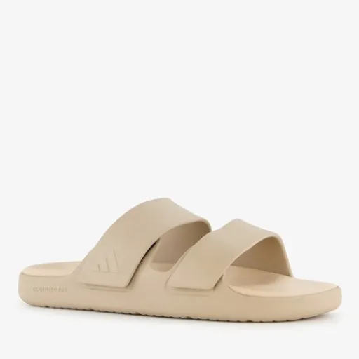 Beige Adidas Slides badslippers voor heren. Gemaakt van imitatieleer en met een profielzool. De slippers hebben twee brede banden met klittenbandsluiting over de wreef.