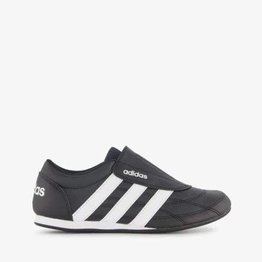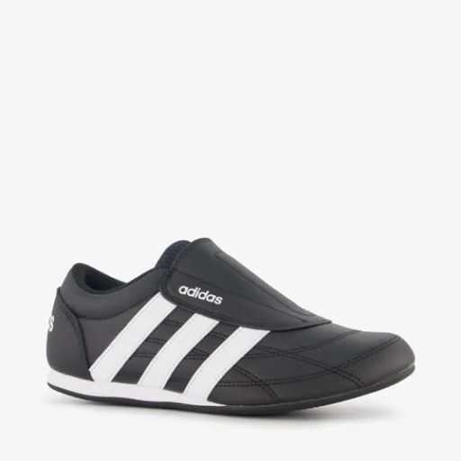 Zwarte Adidas Tekwen sneakers voor dames. Gemaakt van imitatieleer, een binnenwerk van textiel en een rubberen zool. De sneakers hebben een elastische sluiting en vast voetbed van textiel. Voorzien van witte merkaccenten op het bovenwerk.