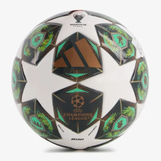 Witte Adidas UCL 24/25 Knock Out Face mini voetbal. De bal wordt versierd met de iconische Adidas 3-Stripes en UEFA Champions League merkopdrukken. Let op: de bal wordt leeg geleverd en moet nog opgepompt worden. Zoek op onze site ‘ballenpomp’ en voeg hem toe in je mandje, dan kun je de bal gelijk gebruiken!
