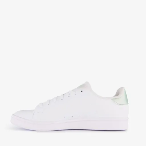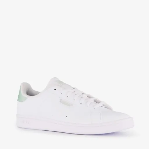 Witte Adidas Urban Court dames sneakers met mintgroene details. Het buitenwerk is gemaakt van imitatieleer, het binnenwerk van textiel en de profielzool van rubber. Deze mooie dames schoenen hebben een vetersluiting en een comfortabele, uitneembare binnenzool van textiel.