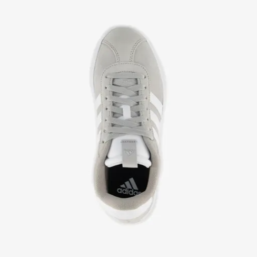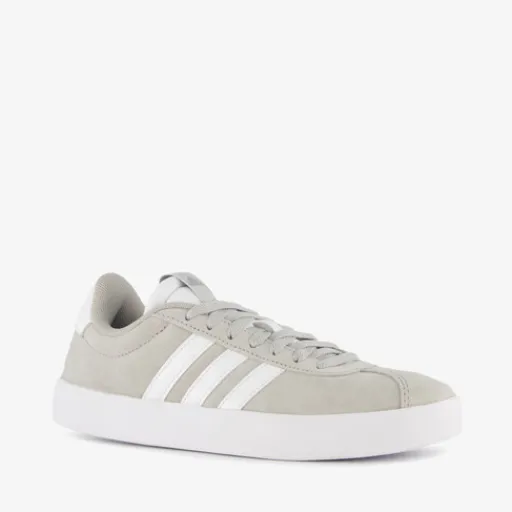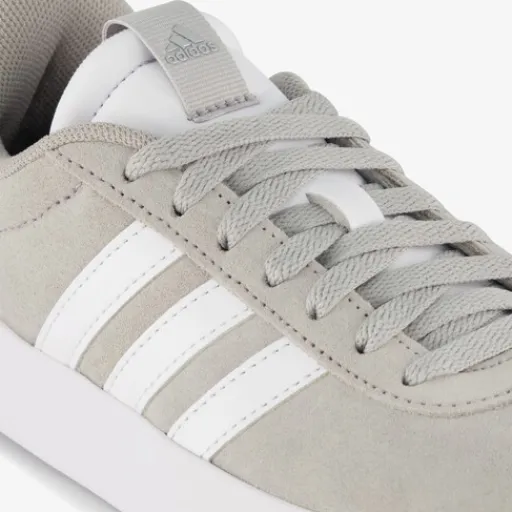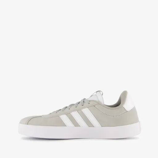 Grijs-witte Adidas VL Court 3.0 sneakers voor dames. Het boven- en binnenwerk zijn gemaakt van leer en de stevige profielzool is van rubber. Voorzien van een vetersluiting en een comfortabele binnenzool van textiel. De sneakers hebben een minimalistische ontwerp en op het buitenwerk zijn de iconische Adidas 3-Stripes aangebracht.