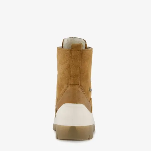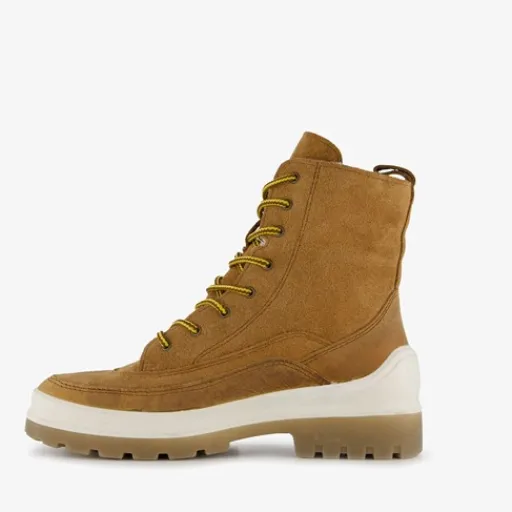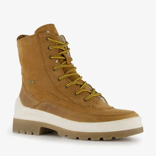 Cognackleurige veterboots voor dames van Be Mine. Het buitenwerk is gemaakt van leer, het binnenwerk van textiel en de stevige zool met profiel is van rubber. Voorzien van een vetersluiting en aantreklusjes aan de achterzijde. De comfortabele binnenzool van textiel is uitneembaar zodat je eventueel jouw eigen zolen in de schoenen kan dragen. Deze stoere boots hebben een laag hakje en een schachthoogte van circa 15 cm.