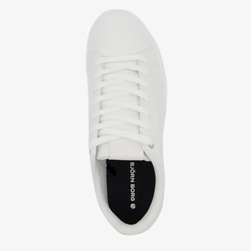 Witte heren sneakers van Bjorn Borg. Gemaakt van imitatieleer, een binnenwerk van textiel en een rubberen zool. De sneakers hebben een vetersluiting en vast voetbed van textiel.