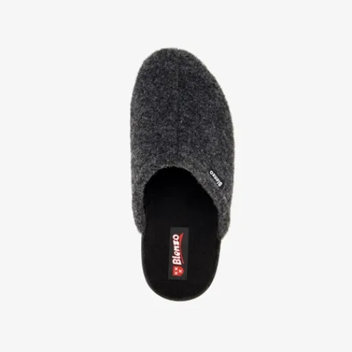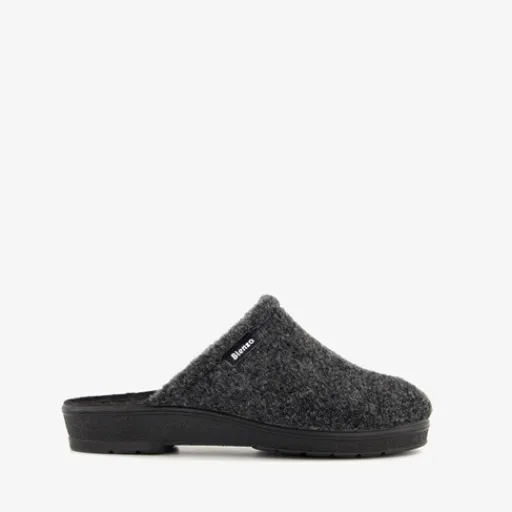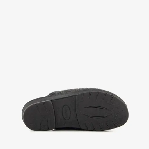 Zwarte muilen voor dames van Blenzo. Het boven- en binnenwerk zijn gemaakt van textiel en de stevige buitenzool met profiel is van rubber. De pantoffels hebben een makkelijke instap en comfortabel voetbed.