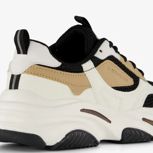 Witte dad sneakers voor dames van Blue Box. Gemaakt van imitatieleer met een binnenwerk van textiel en een grove rubberen zool. De chunky sneakers hebben een vetersluiting en aantreklusjes op de hiel en tong voor een makkelijke instap. Het comfortabele voetbed is gemaakt van imitatieleer. Deze is niet uitneembaar. Voorzien van zwarte en beige accenten op het bovenwerk.