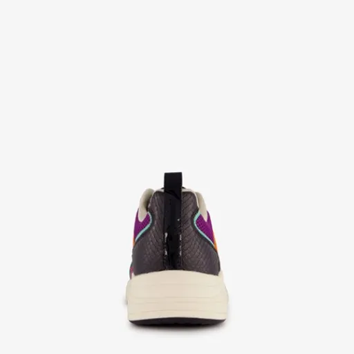 Gekleurde dad sneakers voor dames van Blue Box. Gemaakt van imitatieleer en textiel met een binnenwerk van textiel en een rubberen profielzool. De sneakers hebben een vetersluiting en aantreklusjes op de tong en hiel voor een makkelijke instap. Het uitneembare voetbed is gemaakt van imitatieleer. Voorzien van o.a. oranje, paars en groene accenten op het bovenwerk en een grove zool.