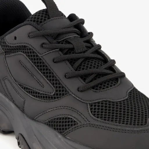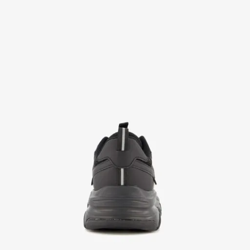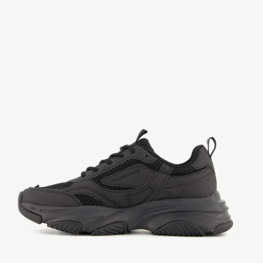 Zwarte dad sneakers voor dames. Gemaakt van imitatieleer met een binnenwerk van textiel en een rubberen profielzool. De sneakers hebben een vetersluiting en hiellusje voor een makkelijke instap. Het vaste voetbed is gemaakt van textiel en bevat Memory Foam voor extra comfort. De sneakers hebben een chunky zool.