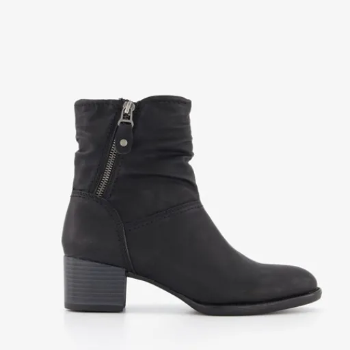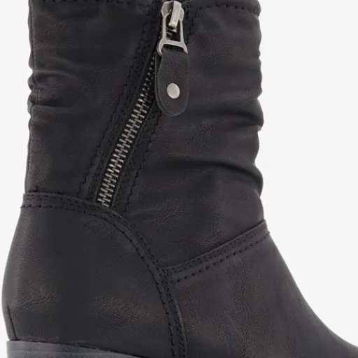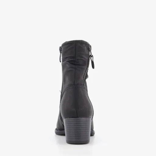 Zwarte enkellaarsjes voor dames uit de Blue Box collectie. Gemaakt van imitatieleer met een binnenwerk van textiel en een stevige buitenzool van rubber. Voorzien van een ritssluiting aan de binnen- en buitenzijde. Binnenzool is niet uitneembaar. Schachthoogte is 15 cm en hakhoogte is circa 5 cm.