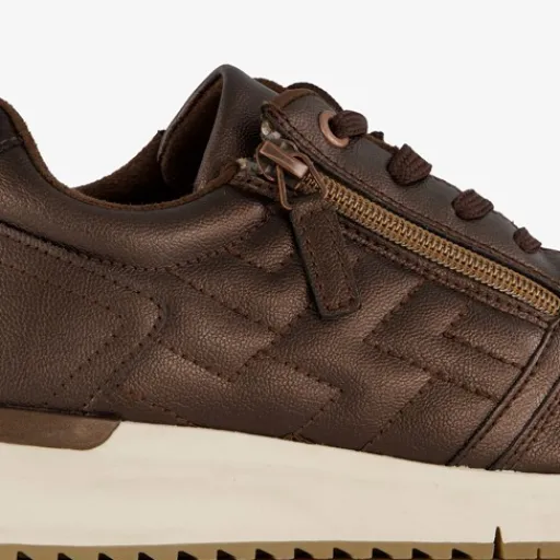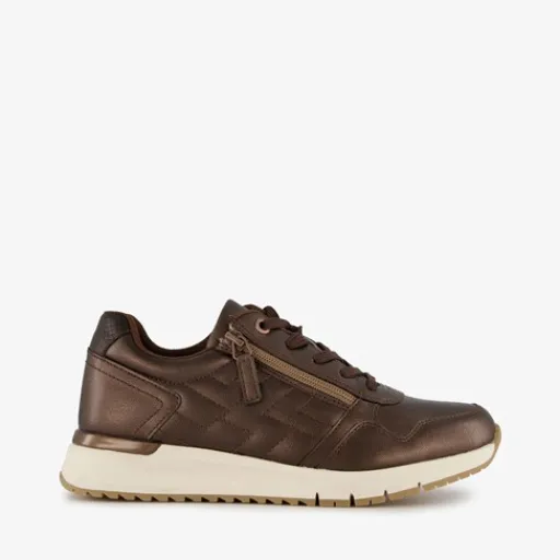 Bronskleurige sneakers voor dames. Gemaakt van imitatieleer, een binnenwerk van textiel en een rubberen zool. De sneakers hebben een rits- en vetersluiting en comfortabel voetbed van textiel. Deze is uitneembaar.
