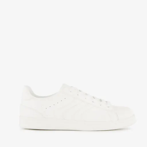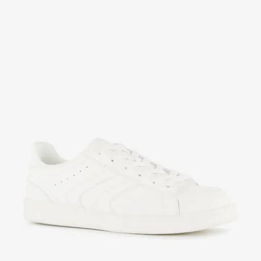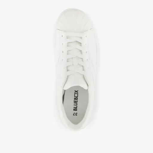 Witte dames sneakers van Blue Box. Het buitenwerk is gemaakt van imitatieleer, het binnenwerk van textiel en de stevige zool met profiel is van rubber. Voorzien van een vetersluiting en een comfortabele binnenzool van textiel. Deze is uitneembaar zodat je eventueel je eigen zolen in de sneakers kan dragen.