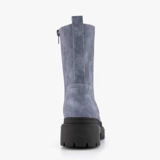 Denim blauwe veterboots voor dames van Blue Box. Gemaakt van imitatieleer, een binnenwerk van textiel en een rubberen zool. De boots hebben een vetersluiting en rits aan de binnenzijde. Het vaste voetbed is gemaakt van imitatieleer. De veterboots hebben een schachthoogte van 18 cm en een lage hak van 2,5 cm.