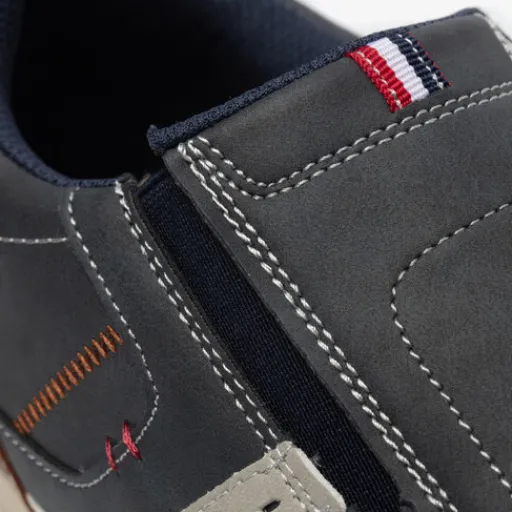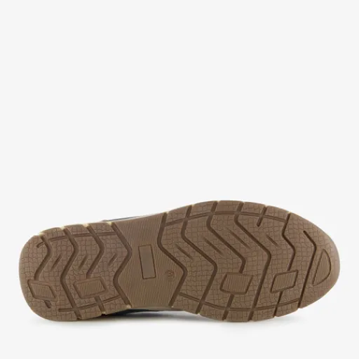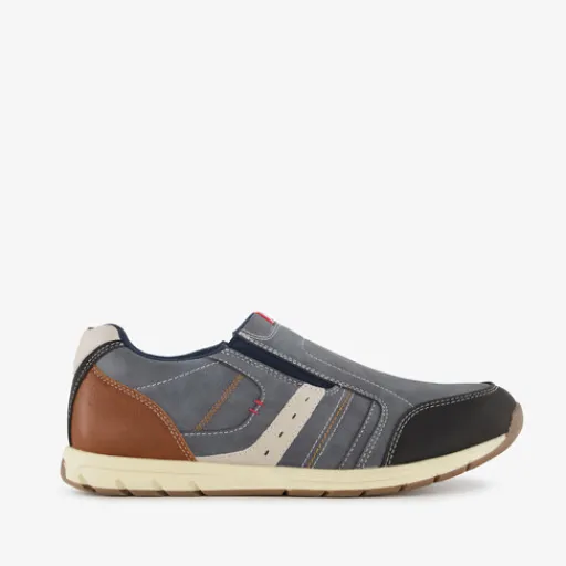 Blauwe instappers voor heren uit de Blue Box collectie. Gemaakt van imitatieleer, een binnenwerk van textiel en een stevige profielzool. De schoenen hebben elastische inzetjes voor een makkelijke instap en optimale pasvorm. Het comfortabele voetbed is gemaakt van textiel. Deze is niet uitneembaar. Voorzien van stiknaden op het bovenwerk en cognac bruine accenten. De instappers hebben een stevige buitenzool van rubber.
