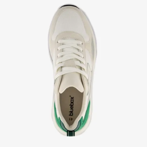 Witte sneakers voor heren van Blue Box. Gemaakt van imitatieleer, een binnenwerk van textiel en een rubberen zool. De sneakers hebben een vetersluiting en hiellusje voor een makkelijke instap. Het comfortabele voetbed is gemaakt van textiel en is uitneembaar. Voorzien van groene details op het bovenwerk en een grove zool.