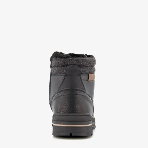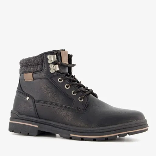Zwarte veterboots voor heren. Gemaakt van imitatieleer, een binnenwerk van imitatieleer en een rubberen zool. De boots hebben een vetersluiting en uitneembaar voetbed van textiel.