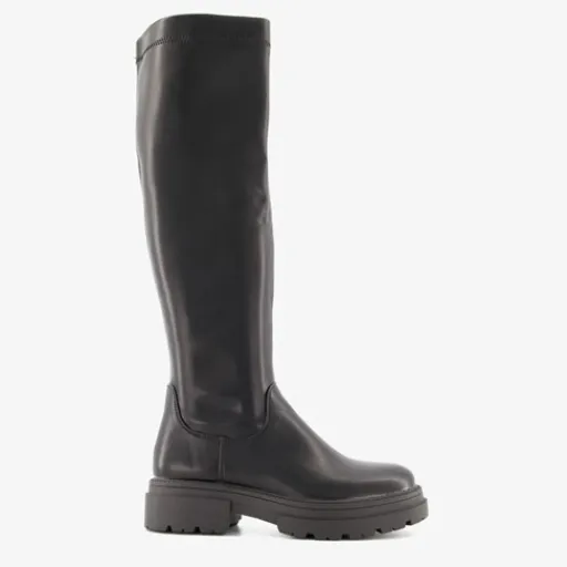 Stoere, hoge boots van Blue Box. Gemaakt van imitatieleer, een binnenwerk van textiel en een rubberen zool. De boots hebben een halve ritssluiting aan de binnenzijde en een vast voetbed van imitatieleer. De boots hebben een schachthoogte van 43 cm en een grove zool van circa 3 cm dik.