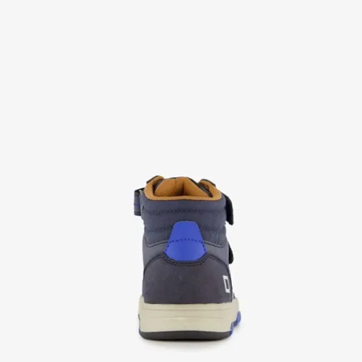 Hoge, blauwe jongens sneakers van Blue Box. Het buitenwerk is gemaakt van imitatieleer, het binnenwerk van textiel en de stevige zool met profiel van rubber. Voorzien van elastische veters met klittenbandsluiting voor een goede pasvorm en hiellusjes voor een makkelijke instap. Het comfortabele voetbed van synthetisch materiaal is uitneembaar zodat je eventueel jouw eigen zolen in de schoenen kan dragen. Deze stoere sneakers zijn versierd met witte en felblauwe accenten.