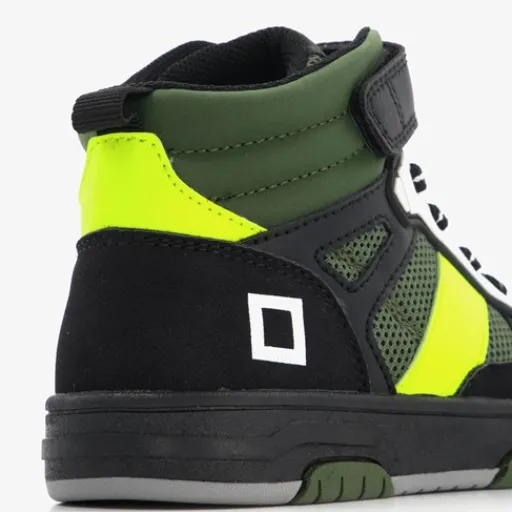 Zwarte, hoge jongens sneakers uit de Blue Box collectie. Gemaakt van imitatieleer met een binnenwerk van textiel en een stevige profielzool van rubber. De sneakers hebben elastische veters met klittenbandsluiting voor een goede pasvorm en hiellusjes voor een makkelijke instap. Het comfortabele voetbed van synthetisch materiaal is uitneembaar zodat je eventueel jouw eigen zolen in de schoenen kan dragen. Deze stoere sneakers hebben neon groene en witte accenten.