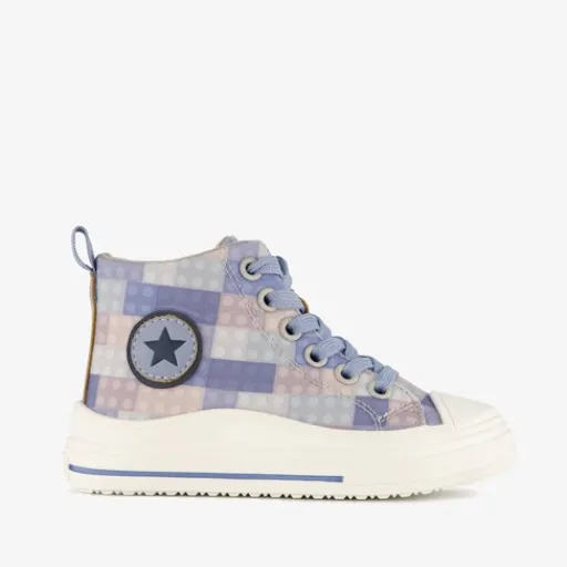 Hoge, blauwe sneakers van Blue Box voor kinderen. Het boven- en binnenwerk zijn gemaakt van textiel en de stevige zool met profiel is rubber. Voorzien van een veter- en ritssluiting voor een optimale pasvorm en hiellusjes voor een makkelijke instap. De sneakers hebben een ruitprint op het bovenwerk, een opdruk van een sterk aan de buitenzijde en een witte buitenzool. Het comfortabele voetbed van textiel is niet uitneembaar.