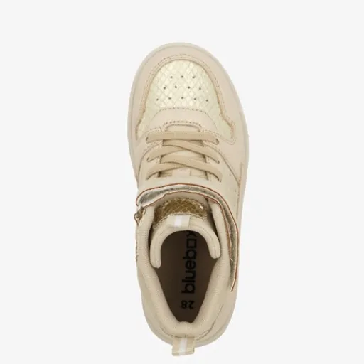 Hoge, goudkleurige sneakers voor meisjes van Blue Box. Gemaakt van imitatieleer, een binnenwerk van textiel en een rubberen zool. De sneakers hebben elastische veters met klittenband voor een makkelijke instap. Het vaste voetbed is gemaakt van imitatieleer. Voorzien van metallic details op het bovenwerk.