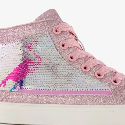 Hoge, roze sneakers met glitters voor meisjes uit de Blue Box collectie. Het buiten- en binnenwerk zijn gemaakt van textiel en de witte buitenzool is van rubber. Voorzien van een rits- en vetersluiting voor een optimale pasvorm en hiellusjes voor een makkelijke instap. Deze mooie sneakers hebben een opdruk van een flamingo aan de buitenzijde. Het comfortabele voetbed van textiel is uitneembaar.