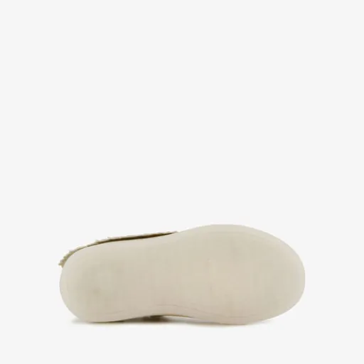 Hoge, goudkleurige sneakers voor meisjes van Blue Box. Het buitenwerk is gemaakt van imitatieleer, het binnenwerk van textiel en de buitenzool is van rubber. De sneakers hebben elastische veters met klittenbandsluiting voor een makkelijke instap. Het vaste voetbed is gemaakt van textiel. De hoge sneakers hebben een vleugel aan de buitenzijde, glitter op de hak en lichtjes in de zool. Deze gaan aan wanneer er op de schoenen gelopen wordt en zijn niet oplaadbaar.