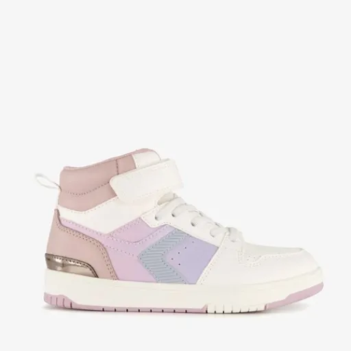 Hoge meisjes sneakers met pastelkleuren van Blue Box. Het buitenwerk is gemaakt van imitatieleer, het binnenwerk van textiel en de stevige zool met profiel is van rubber. Voorzien van elastische veters en een klittenbandsluiting en hiellusjes. Deze gave sneakers hebben een comfortabele voetbed van textiel en op de hak is een leuke, goudkleurige details aangebracht.
