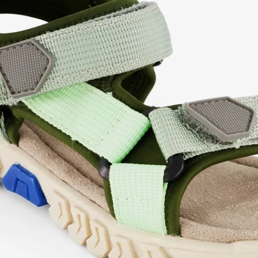 Groene sandalen voor jongens van Blue Box. Gemaakt van imitatieleer met een binnenzool van textiel en een stevige profielzool van rubber. Voorzien van klittenbandsluitingen bij de tenen en enkel en hiellusjes voor een makkelijke instap.
